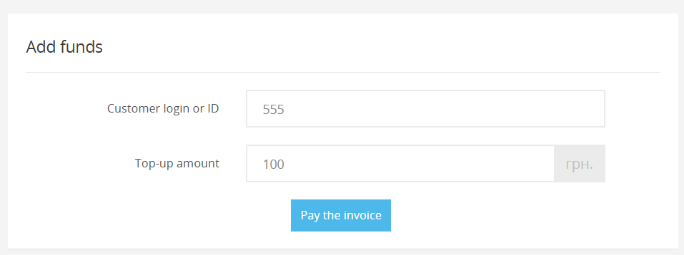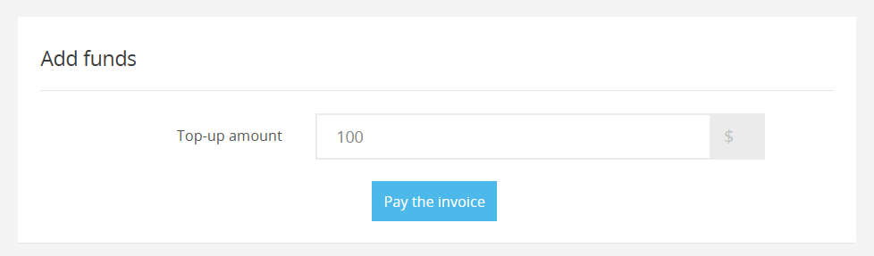 🔷 If you are already logged in to your account, enter the top-up amount and click the Pay the invoice.