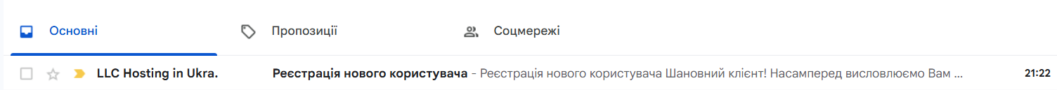 Якщо раніше ви отримували листи від Hosting in UA, варто пошукати лист із підтвердженням у ланцюжку з першим листом.