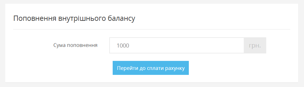 Внутрішній баланс акаунта — це віртуальний рахунок усередині вашого Особистого кабінету, з якого здійснюється оплата всіх послуг на хостингу. Він дозволяє швидко та зручно розраховуватися без необхідності кожного разу вводити платіжні дані.